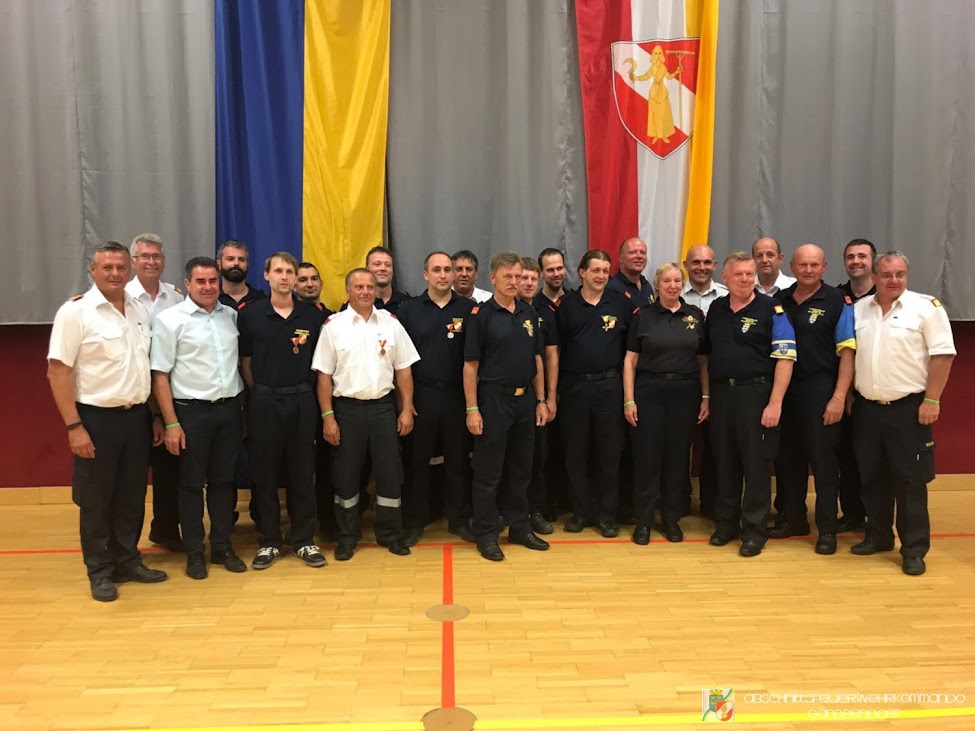 Nach kurzen Worten des Bürgermeisters und Landesfeuerwehrkommandanten wurden folgende Kameraden aus dem Bezirk für die Organisation oder als Bewerter ausgezeichnet bevor es zum gemütlichen Teil überging: